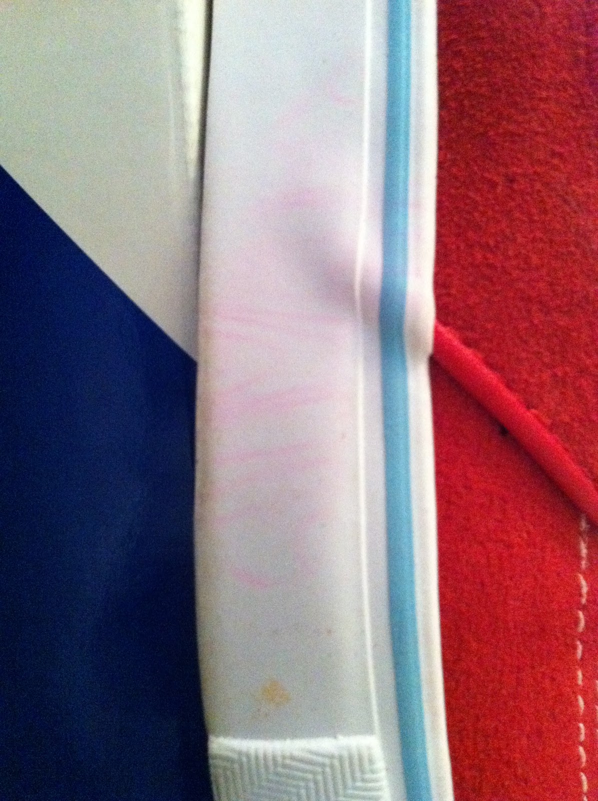 Flaws: Red traces that cant be removed due to a stain but barely see-able